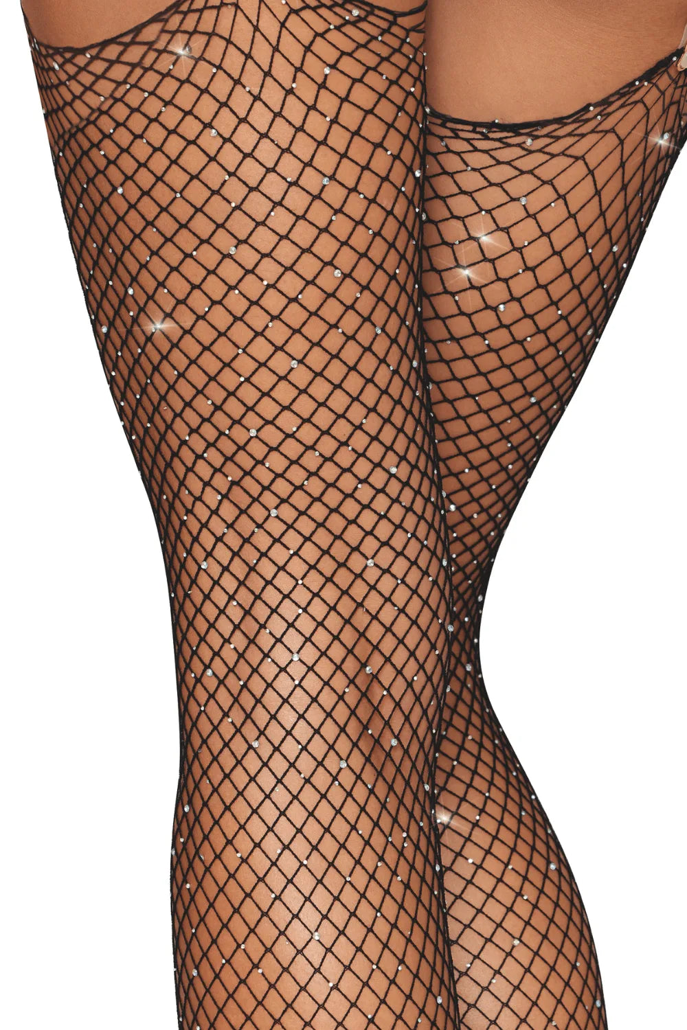 Bas Résille Large Maille avec Strass : Élégance et Séduction