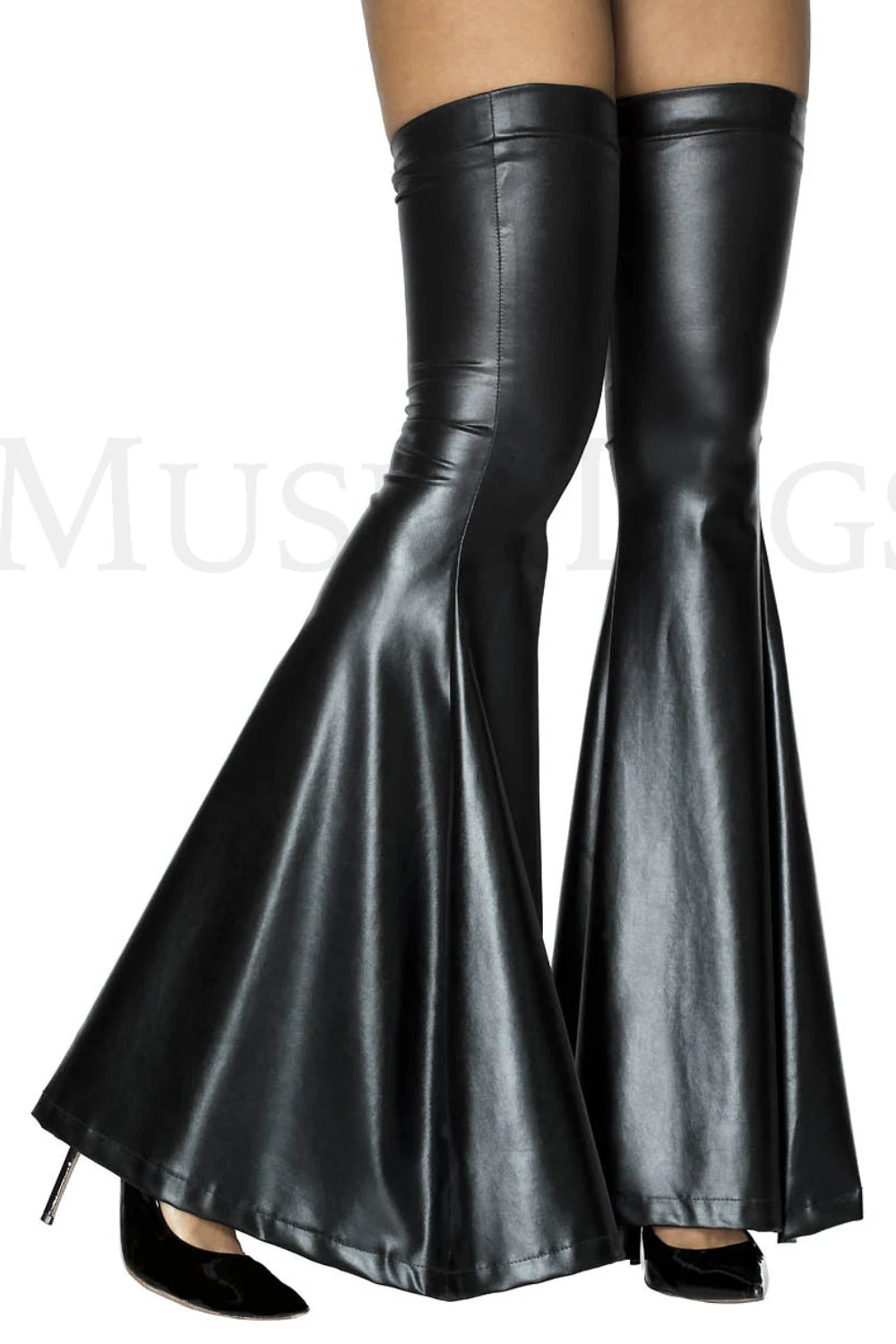 Bas Patte d'Éléphant en Tissu Effet Mouillé Noir